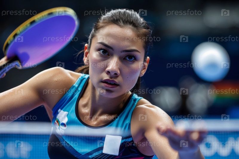 Женщина-спортсменка играет в настольный теннис на чемпионате мира