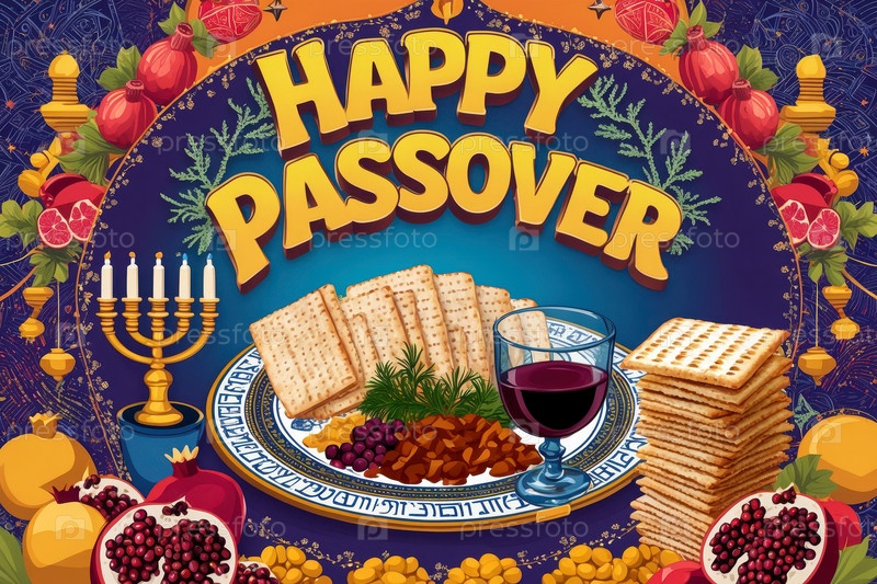 AI Generative Greeting Card for Традиционная религия Иудаизм Еврейский праздник Пасха Песах в Израиле