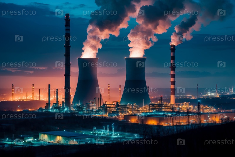 Генеративное загрязнение воздуха в большом промышленном городе, растение токсичный дым через высокие дымоходы