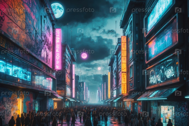 ИИ генеративный футуризм научная фантастика городской cityscape, кибер-город городская панорама будущее зданий