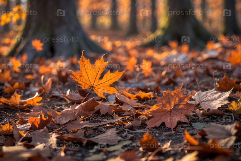 Осенняя атмосфера на фоне желтых и красных листьев, лист лежит в земле лесной парк AI Generative