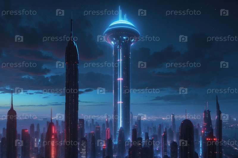 ИИ генеративный футуризм научная фантастика городской cityscape, кибер-город городская панорама будущее зданий