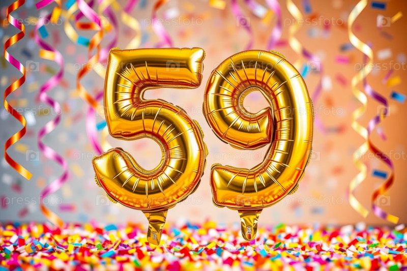 Гелий день рождения воздушный шар формы номер пятьдесят девять, золотые буквы фигура 59 праздник праздничный фон декор