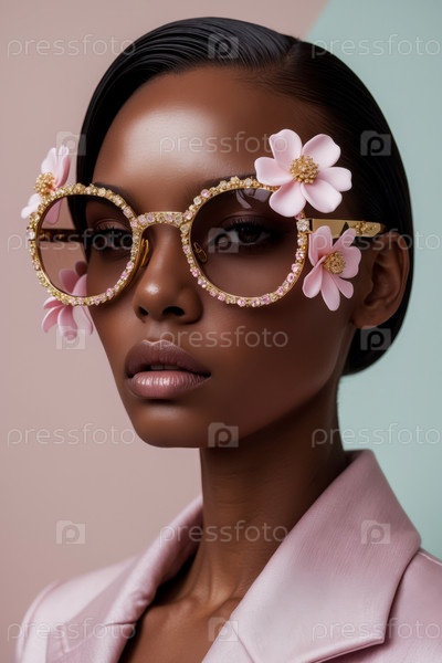 ИИ генеративный портрет молодой женщины естественно чистый помада макияж, модель моды красота в очках