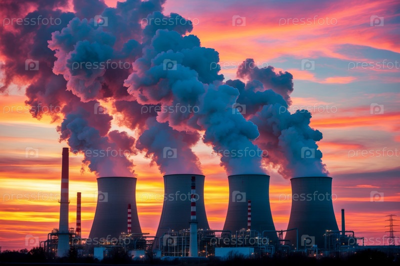 Генеративное загрязнение воздуха в большом промышленном городе, растение токсичный дым через высокие дымоходы