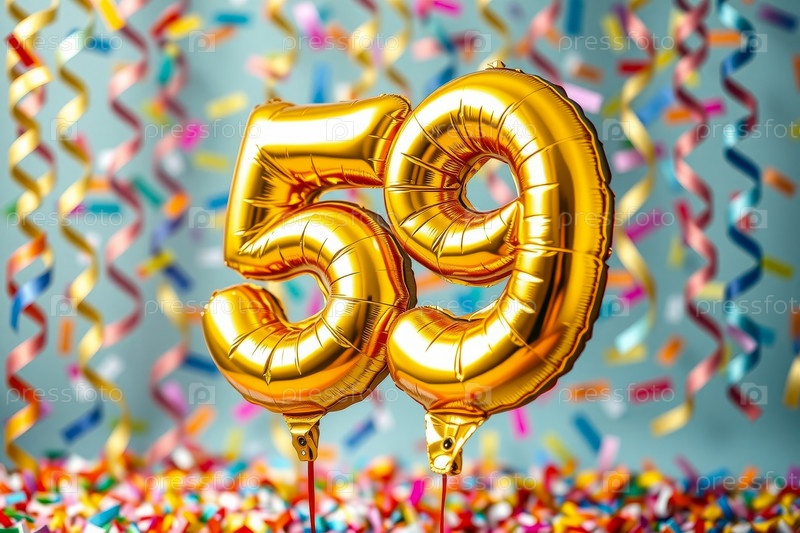 Гелий день рождения воздушный шар формы номер пятьдесят девять, золотые буквы фигура 59 праздник праздничный фон декор
