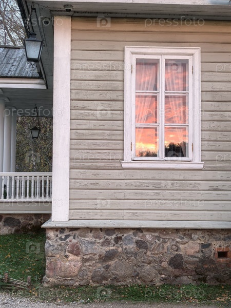 Отражение заката в окне усадьбы . Сельцо Михайловское . Пушкинские горы
