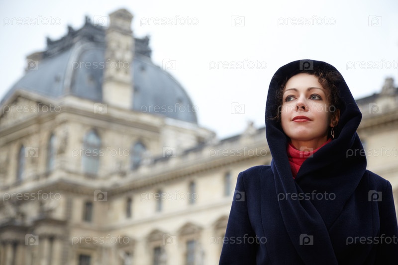 Париж - 31 декабря: молодая женщина вблизи стояла во дворе