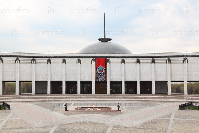 Мемориал в парке Победы в Москве, вечный огонь, два солдата с