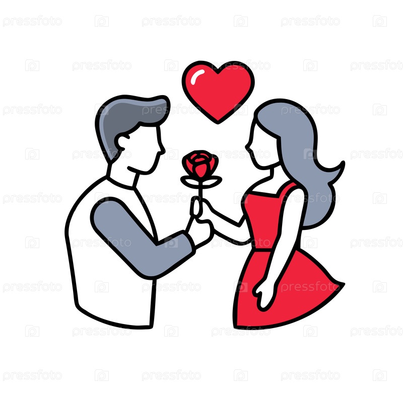 Мужчина на коленях дарит женщине красную розу, представляя концепции предложения, любви, романтики, свиданий и партнерства