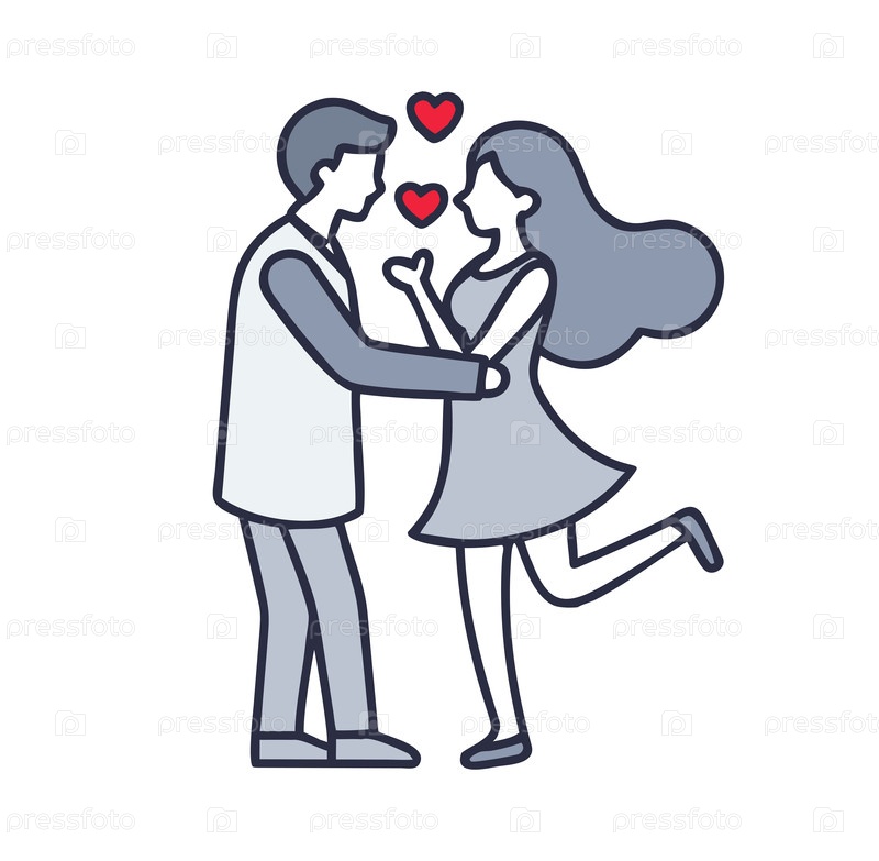 Любящая пара обнимается в окружении плавающих сердец