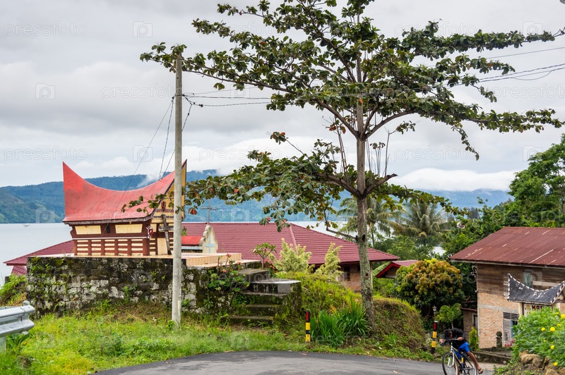 Вид на дома деревни Туктук на острове Самосир