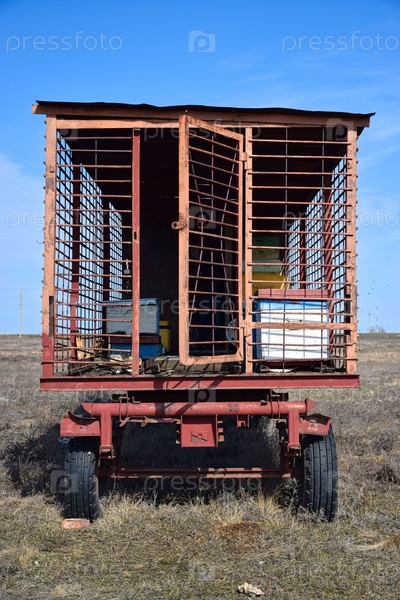 Передвижная пчелиная пасека. Домики для пчел. Перевозка пасеки ранней весной в поле. Саратовская область, март 2026 год