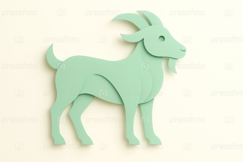 Бумажная резка козы изготовлена из слоистой миндальной пастельной бумаги, мягких геометрических форм и нежных теней