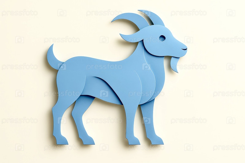 Бумажная коза, сделанная из мягких небесно-синих слоистых форм на светлом фоне