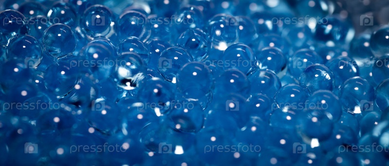 Крупный план синих гидрогелевых шариков, лежащих, словно сказочные жемчужины
