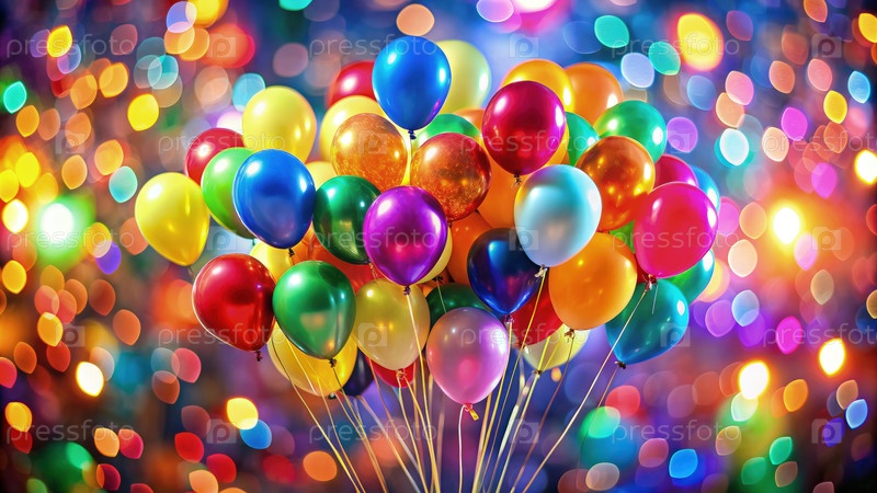 Красочный букет из воздушных шаров в праздничных огнях