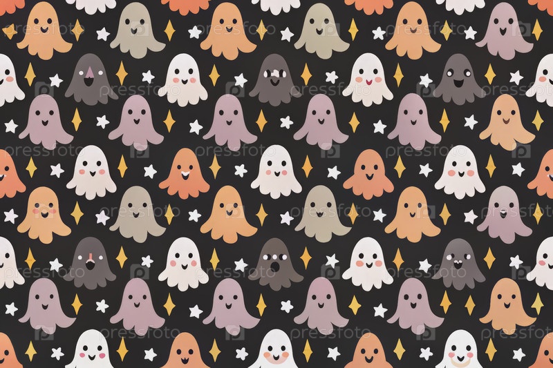Бесшовный шаблон дружеских призраков Хэллоуина со звездами