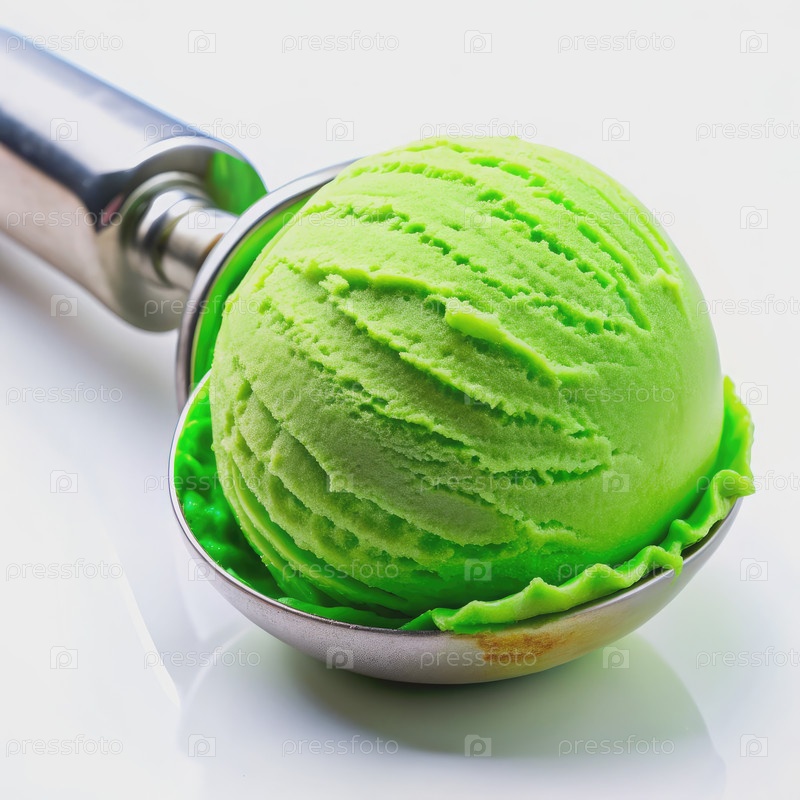 Одинокая ложка зеленого мороженого - это мороженое, содержащееся в ложке из нержавеющей стали