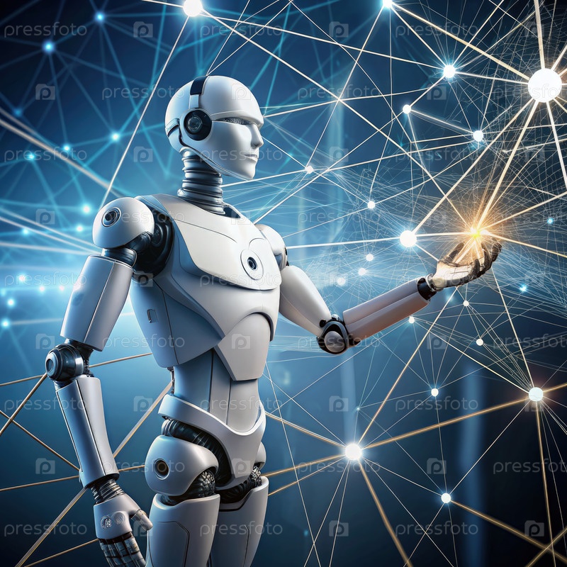 Белый робот контролирует большую сеть узлов