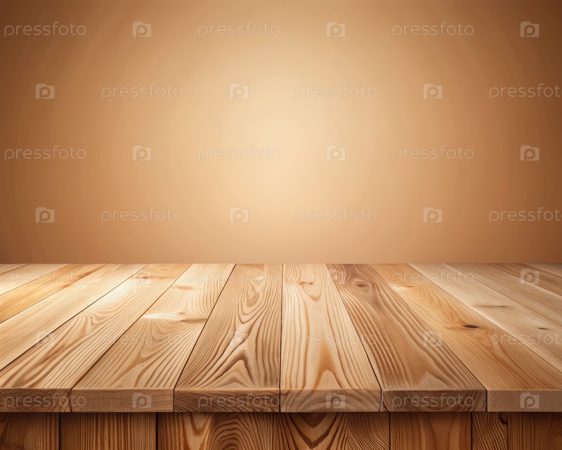 Деревянная поверхность стоит на светло-коричневом фоне для дисплея шкалы измерения высоты
