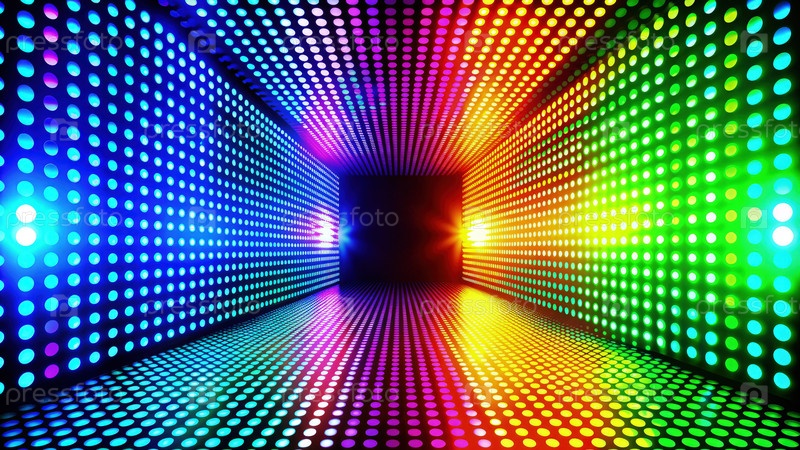 Вибрирующие неоновые точки освещают темный туннель, создавая яркий световой дисплей