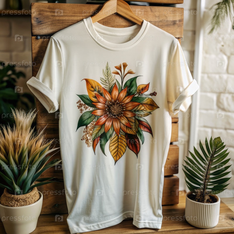 Белая футболка с цветочным дизайном, нарисованным вручную. генеративный AI