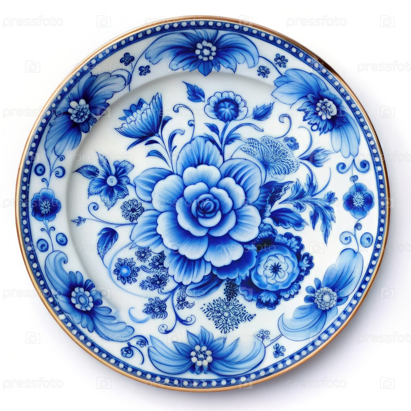 Голубая и белая цветочная чайная тарелка. генеративный AI