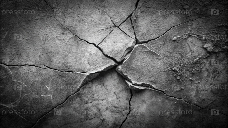 Черно-белое изображение треснувшего камня с темным фоном