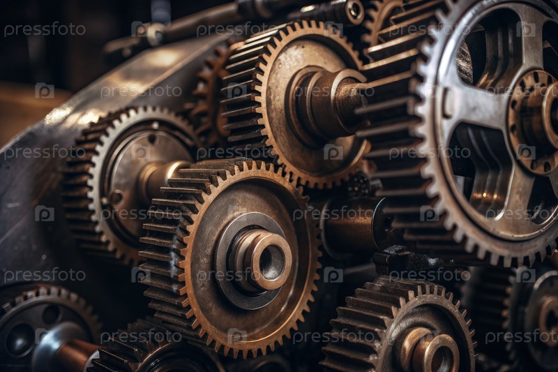 Ближайшее изображение колес промышленных двигателей на фабрике. генеративный ИИ