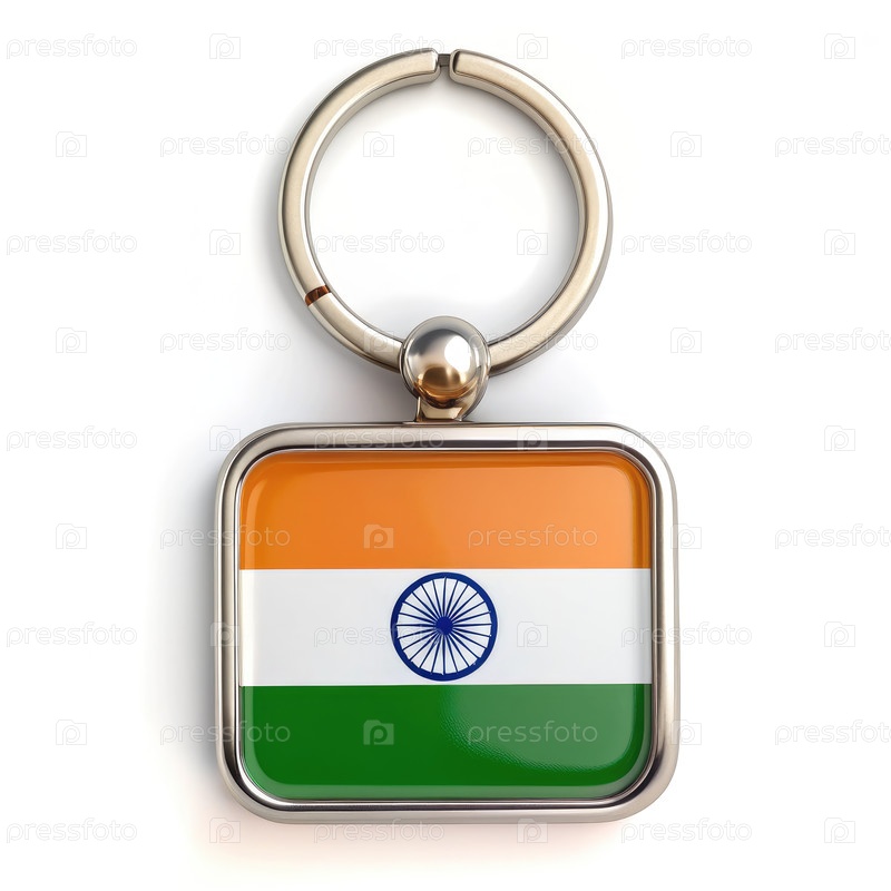 Серебряный ключевой с изображением индийского флага: Близкое фото серебряного ключевого с изображением индийского флага. Флаг прямоугольный и отображает цвета индийского флага. генеративная ИИ