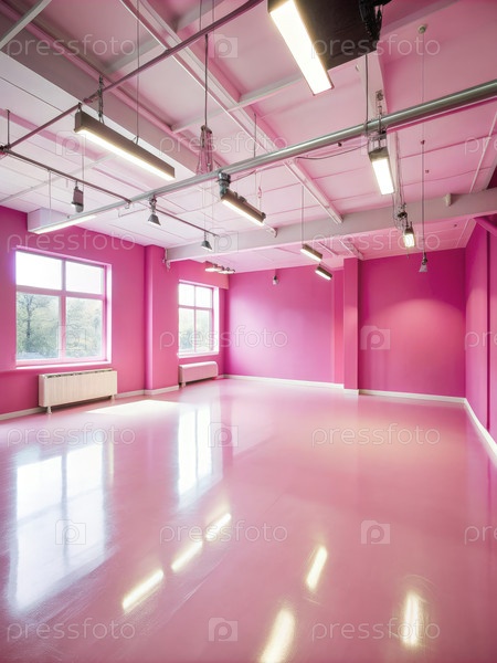 Пустая розовая студия с яркими огнями и окнами. генеративный ИИ