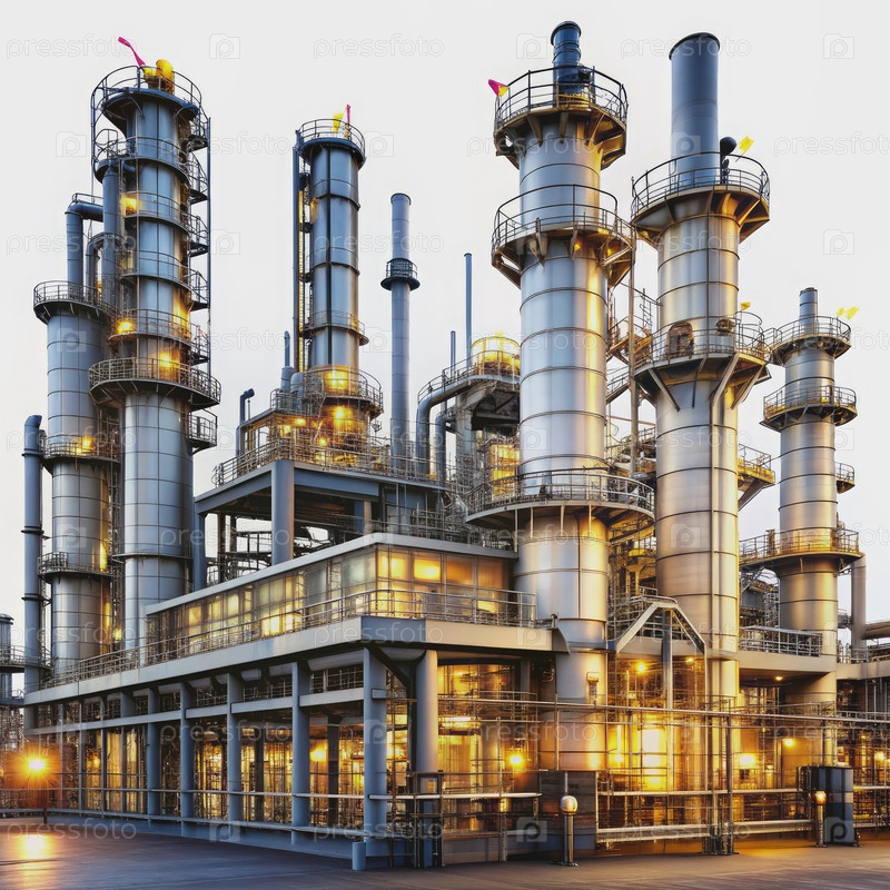Большой нефтеперерабатывающий комплекс с обширной трубопроводной системой в Дуск