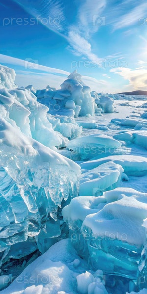 Потрясающий вид на голубые ледовые образования под чистым небом