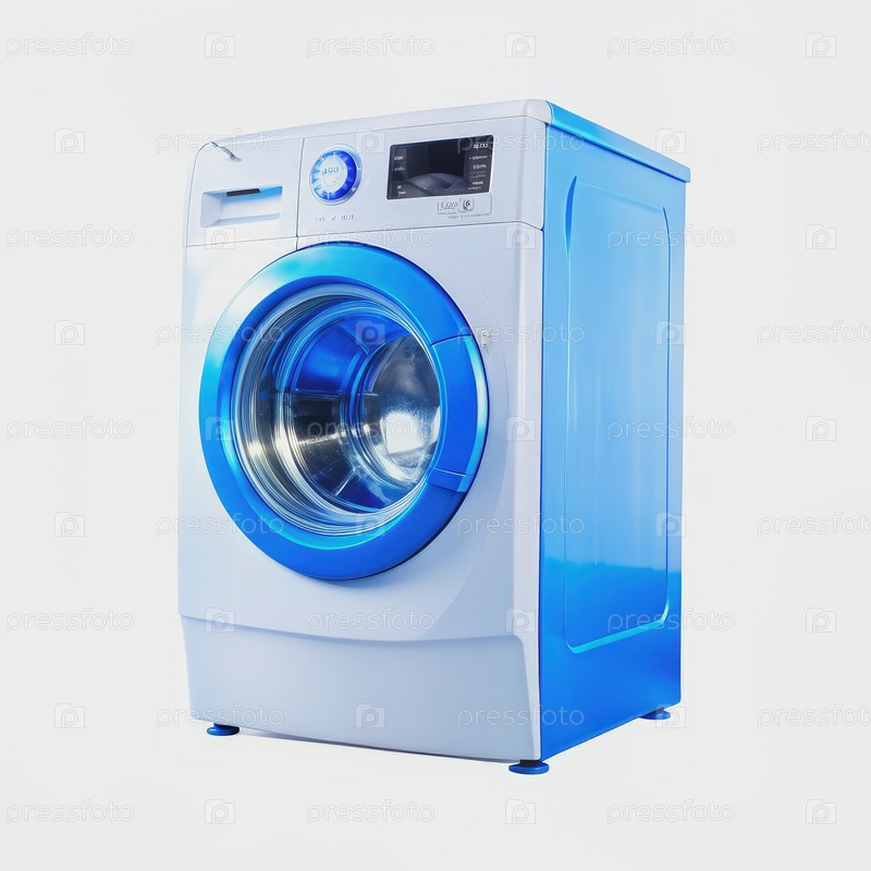 Голубо-белая стиральная машина, изолированная на белом фоне