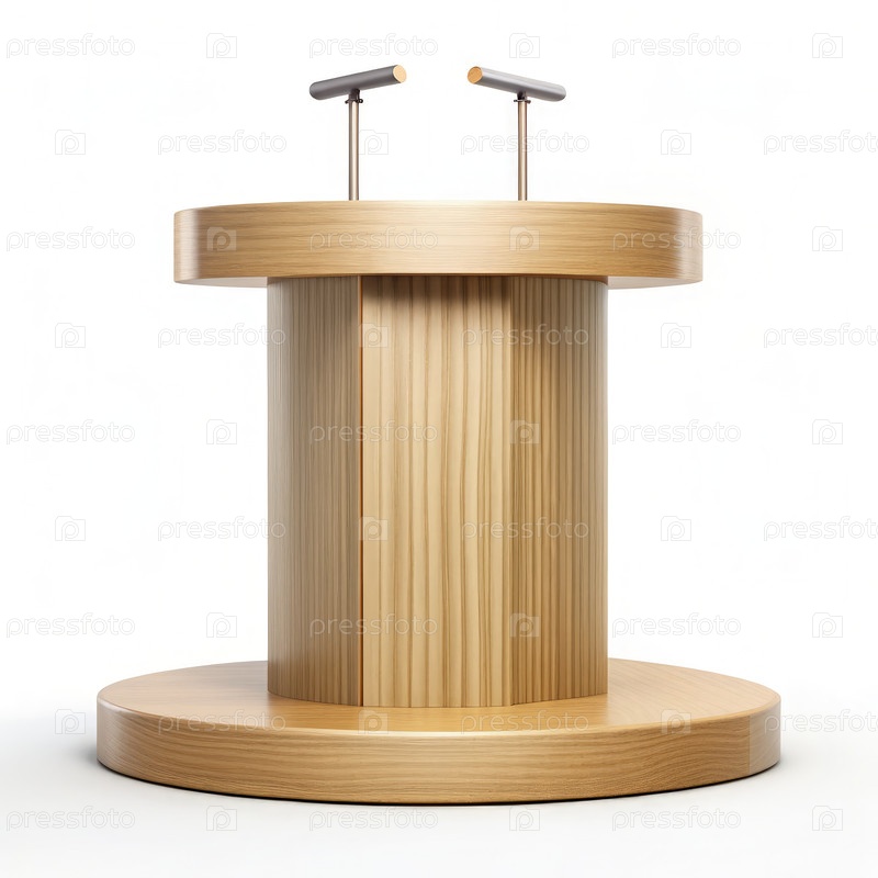 Деревянный подиум, расположенный для презентации продукта на простом белом фоне