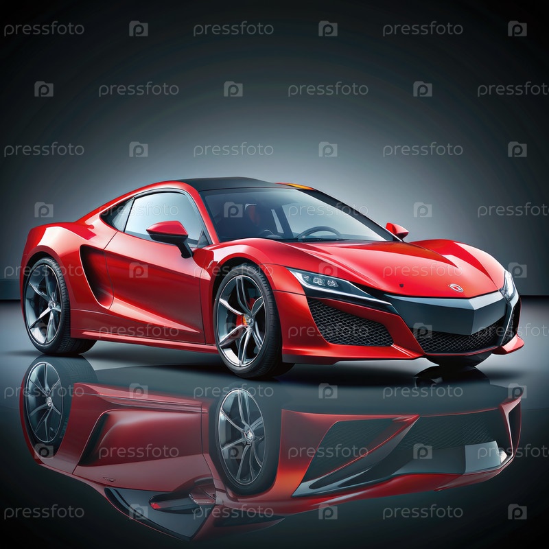 Красный спортивный автомобиль, отражающийся на гладкой поверхности