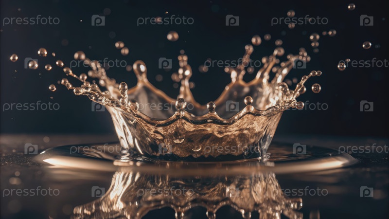 Капля воды брызгает в темной студии. генеративный ИИ