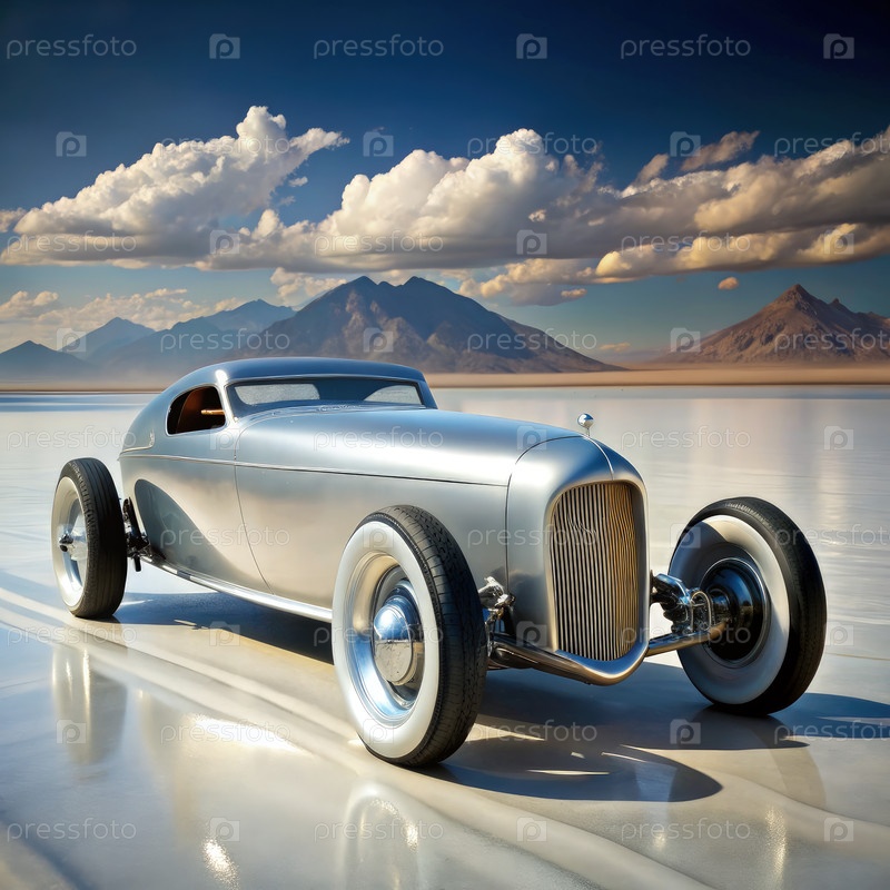 Серебряный упрощенный автомобиль в потрясающем пейзаже под ярко-синим небом