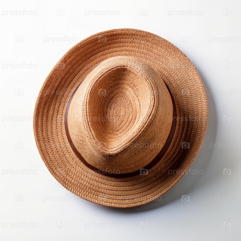 Коричневая соломенная шляпа Fedora с кожаной лентой на белом фоне. генеративный AI