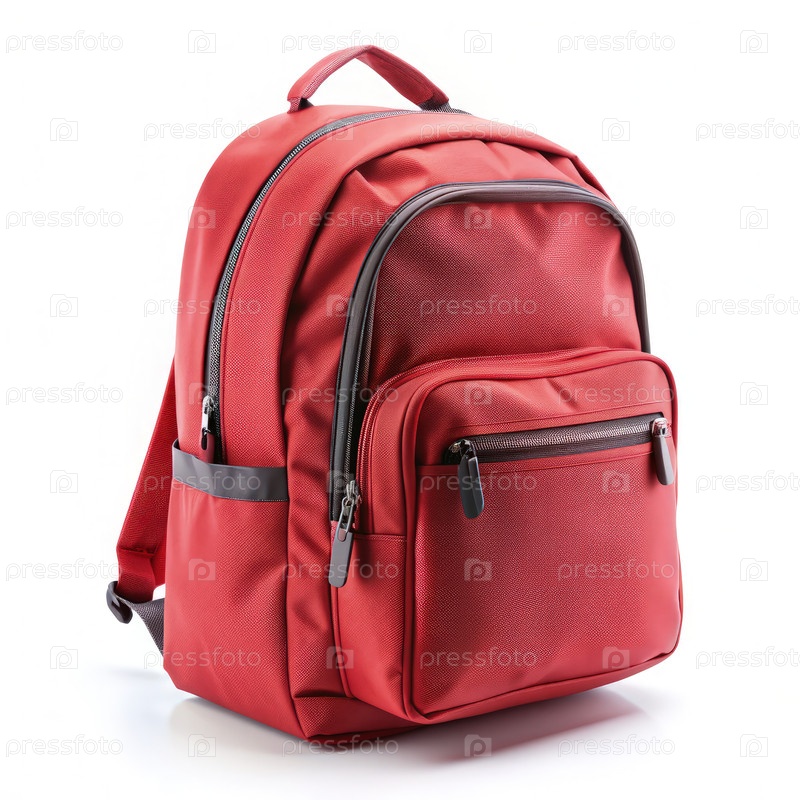 Стильный красный школьный рюкзак на белом фоне Готов к академическим приключениям