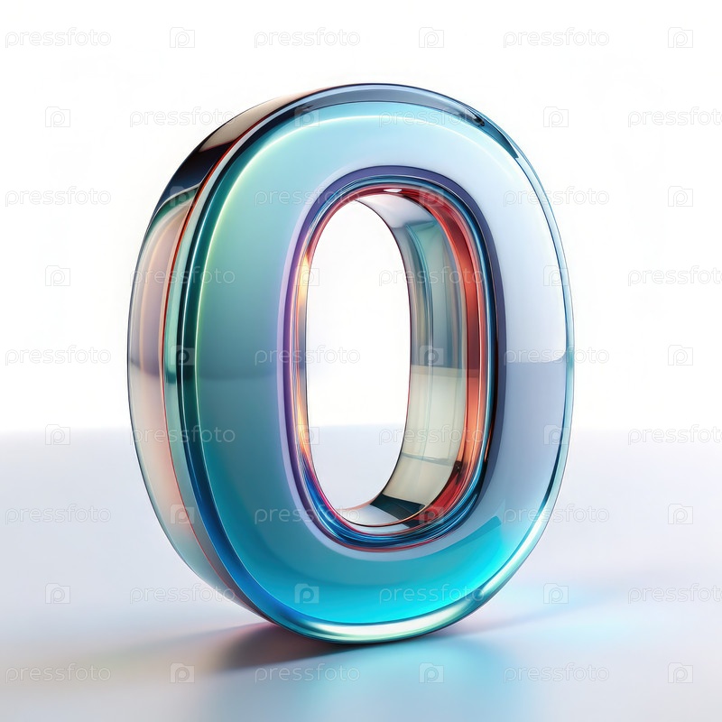 Прозрачная стеклянная буква O освещена мягким светом на минималистичной поверхности