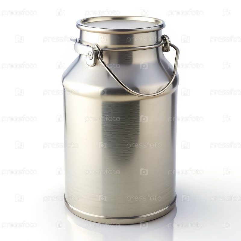 Серебряная молочная банка с ручкой на белом фоне. генеративный ИИ
