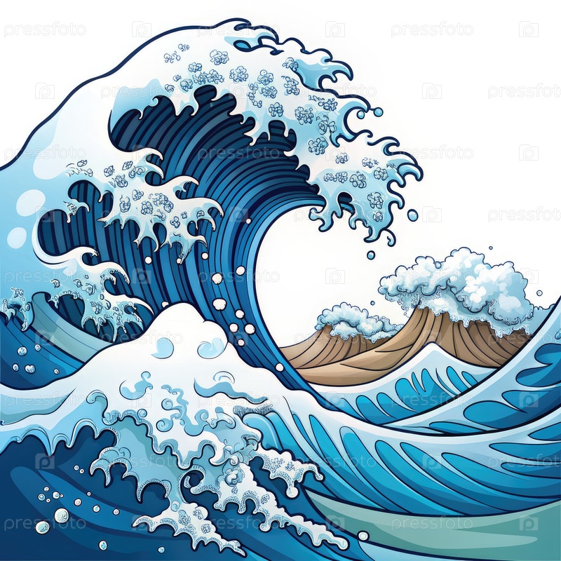 Традиционная японская иллюстрация голубой волны с горными вершинами