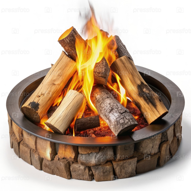 Ближайшее изображение горящей ямы с бревнами в окруженной камнем обстановке