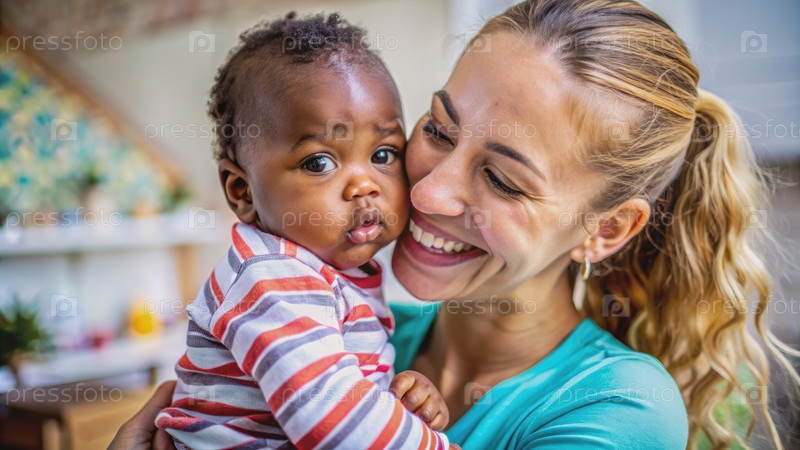 Счастливая молодая мама, держащая ребенка в руках. генеративный ИИ