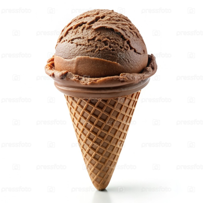 Одиночный шоколадный мороженый конус на белом фоне