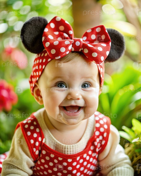 Очаровательный ребенок с милой улыбкой и головным поясом Polka Dot наслаждается природой на свежем воздухе