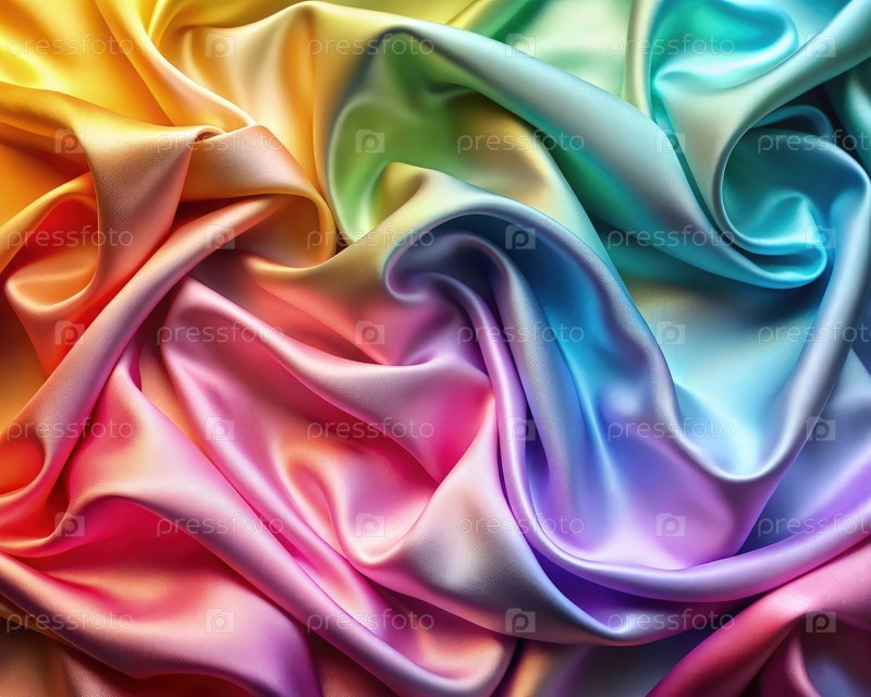 Градиентная текстурированная шелковая ткань в естественном свете, отображающая яркие цвета и текущие морщины