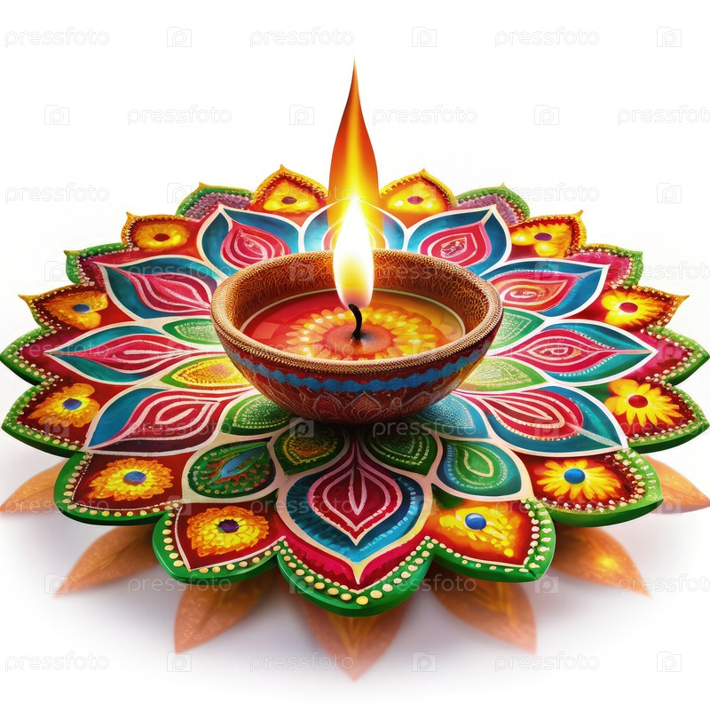 Традиционная масляная лампа освещается в цветном дизайне ранголи